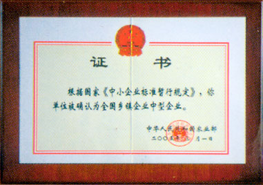 National Medium-sized Enterprise Certificate for Township and Village Enterprises